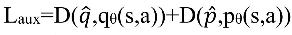 辅助损失 L_aux 用于那些具有预定义语义的预测,即动作价值 (q) 和辅助策略预测 (p) ,具体如下:
