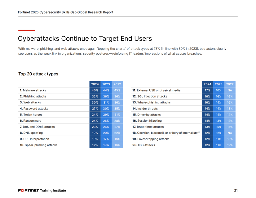 近日,专注推动网络与安全融合的全球性综合网络安全解决方案供应商 Fortinet,发布《2025 年全球网络安全技能差距研究报告》。该报告基于对来自29个不同国家和地区的1,850多名IT及网络安全决策者的调查,覆盖制造业和金融服务等多个行业。