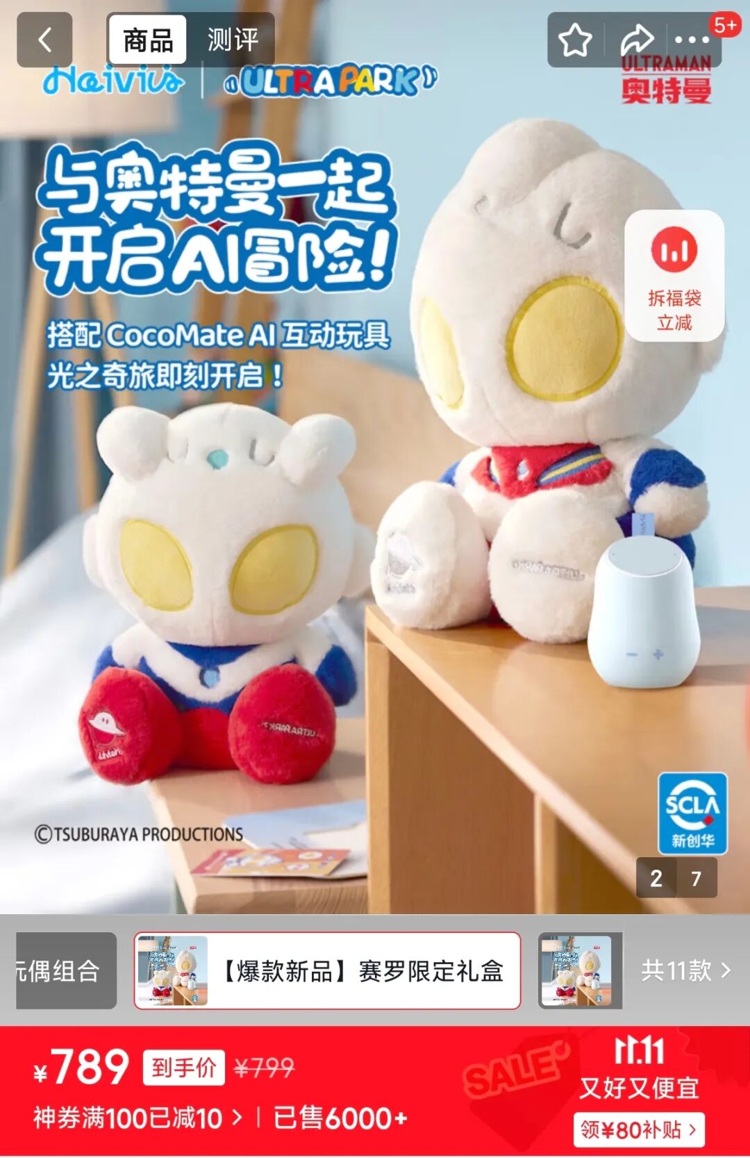 其中,跃然创新联合创始人高峰在今年6月曾透露,BubblePal在不到一年的时间,销量突破25万台。若以399元的价格计算,则总销售额或已突破1亿大关。不过,在8月25日官方发布的A轮融资消息中,销量数字又变成了“突破20万台”。跃然创新还于今年8月推出了二代AI玩具产品CocoMate,并与奥特曼IP达成联名合作,目前该产品在京东官店的销量达6000+,总销售额超450万元。