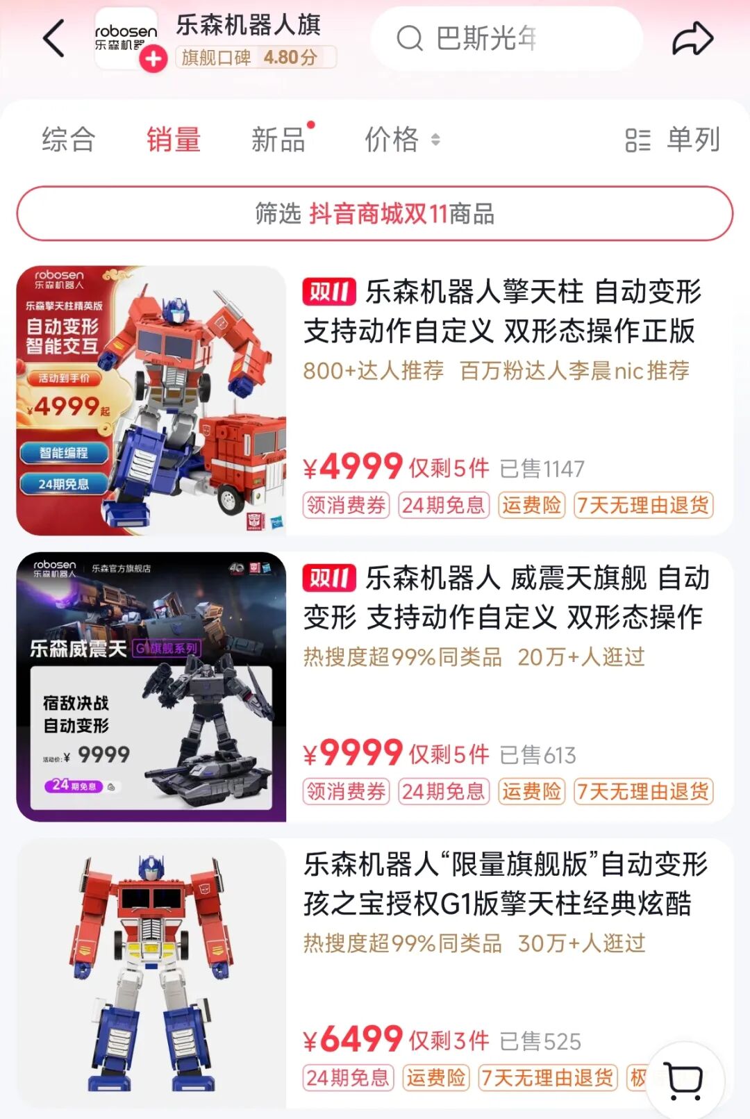 乐森机器人(Robosen)成立于2008年,是一家专注于消费级机器人研发、生产与销售的创新型科技公司。早在2021年,其便推出了全球首款可实现自动变形的消费级机器人乐森擎天柱旗舰版,并广受海外市场欢迎,原价999美元的产品曾一度被炒作到6000美金高价。2024年底还凭借威震天变形金刚机器人在海外平台爆火,甚至获得马斯克的点赞好评。