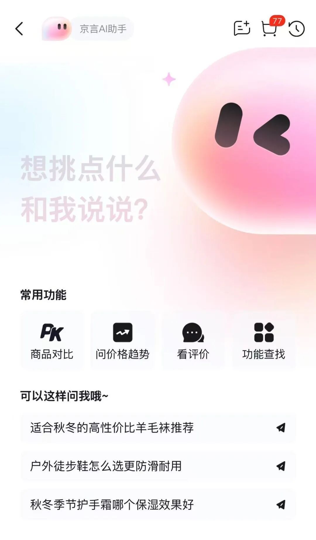 目前看来,京言AI助手在“智能”程度上还比不上淘宝,但京东即将在其App 16.0上线的“爱购”功能或许会有不一样的变化。据京东介绍,该平台重构了电商的“人货场”连接方式。在传统搜索模式下,用户需要将模糊需求转化为精准关键词,而“爱购”通过自然语言交互实现了从需求到方案的直接映射——用户只需描述“三口之家、厨房预留60cm宽度、喜欢风冷无霜”,系统就能生成包含产品对比、定制详情页的完整解决方案。