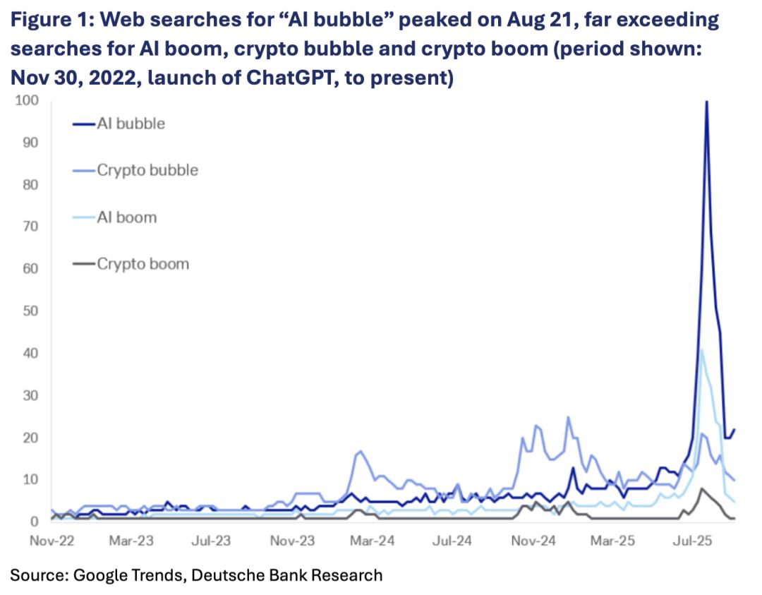 不过,根据谷歌趋势的数据,上个月中,网络上对「AI泡沫」的谷歌搜索量急剧下降。