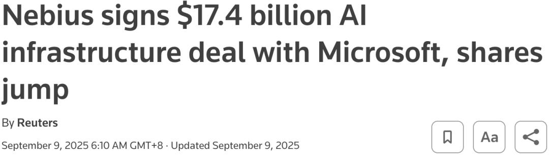 比如,微软与Nebius达成的174亿美元(未来可能扩展至194亿美元)协议就是其中之一。
