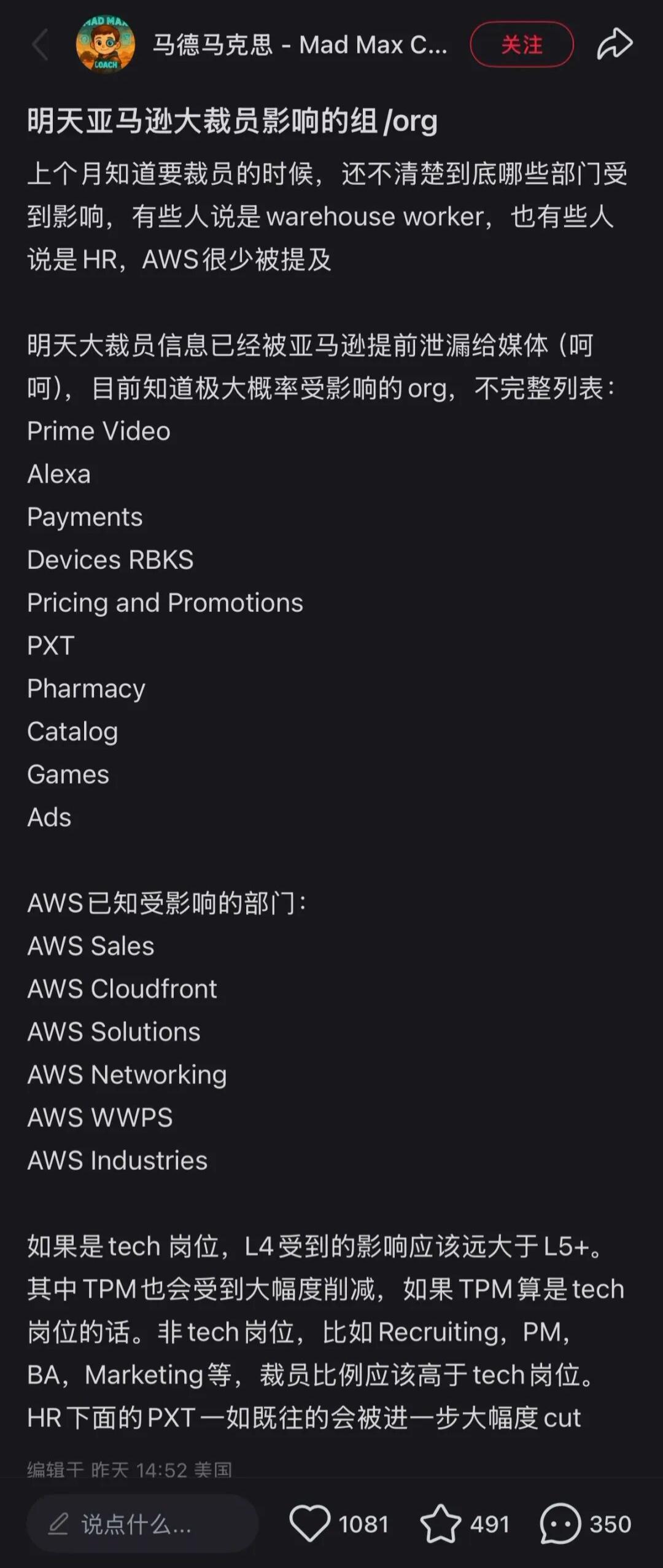 亚马逊内部甚至流传着一句玩笑话:「这次裁员连L7(对应Principal(首席)级别)都保不住。」