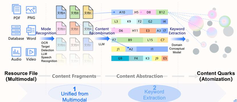 内容分析是数据智能的基石。它的核心在于解构海量、杂乱的原始数据(文本、图像、音频、文档),并提取其中的精髓:实体、属性和关系。我们可以将数据分解成微小的原子单元,我们称之为“内容夸克”。