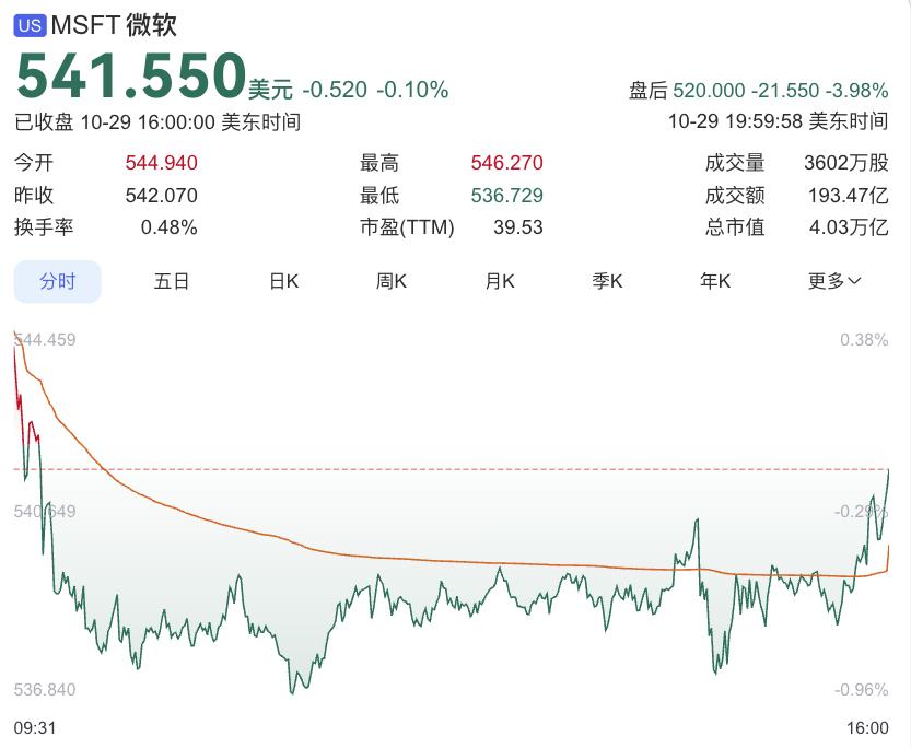 受财报信息影响,微软股价盘后一度跌超5.2%,市值达4.03万亿美元。但截至周三收盘,其股价今年已上涨28%,此前周二其市值首次突破4万亿美元。