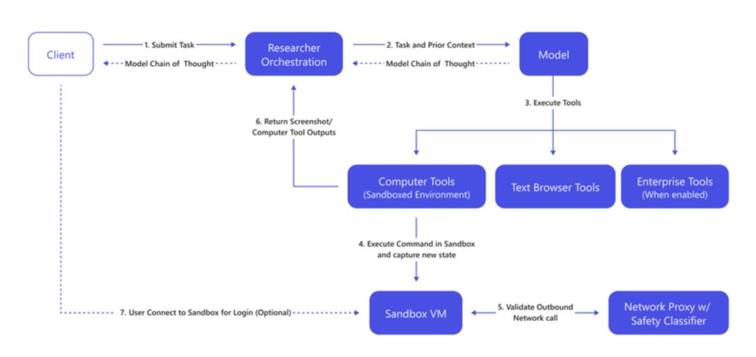 当模型确定需要执行某个操作时,就会启动一个运行在Windows 365上的虚拟机,它托管在云端,与内网和用户设备完全隔离。
