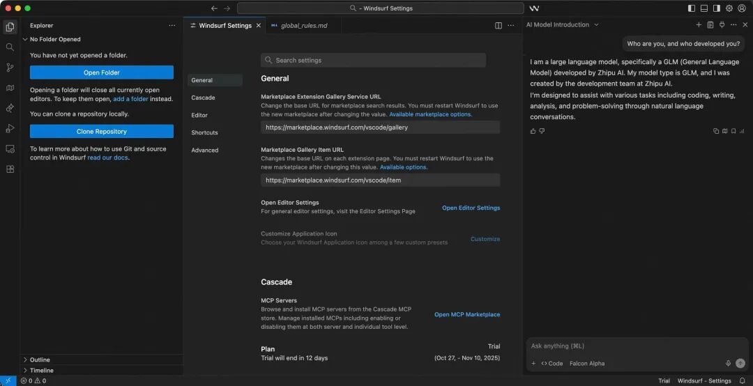 网友们还在Windsurf中直给提问,你是谁,谁开发了你?