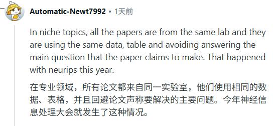 他没有投稿,只是今年负责评审几篇论文。但他形容,这次经历让他「开始怀疑整套机制是不是出问题了」。