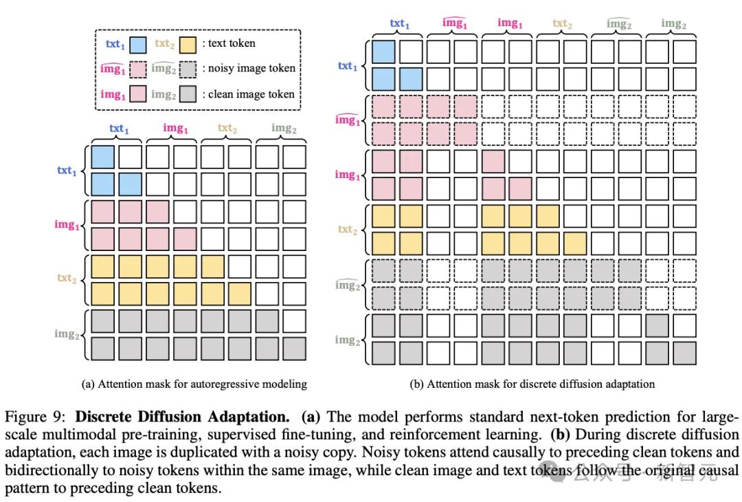 DiDA的核心思想是,在模型完成大规模的自回归预训练和后训练之后,通过一个轻量级的「适应」阶段,将其从「逐个Token预测」的模式,转换为「并行生成」的模式。