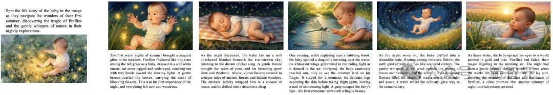 给定一个主题,Emu3.5能生成一系列图文并茂、情节连贯、主角形象高度一致的绘本故事。这得益于其长序列建模能力,解决了传统模型生成多图时「张张换人」的痛点