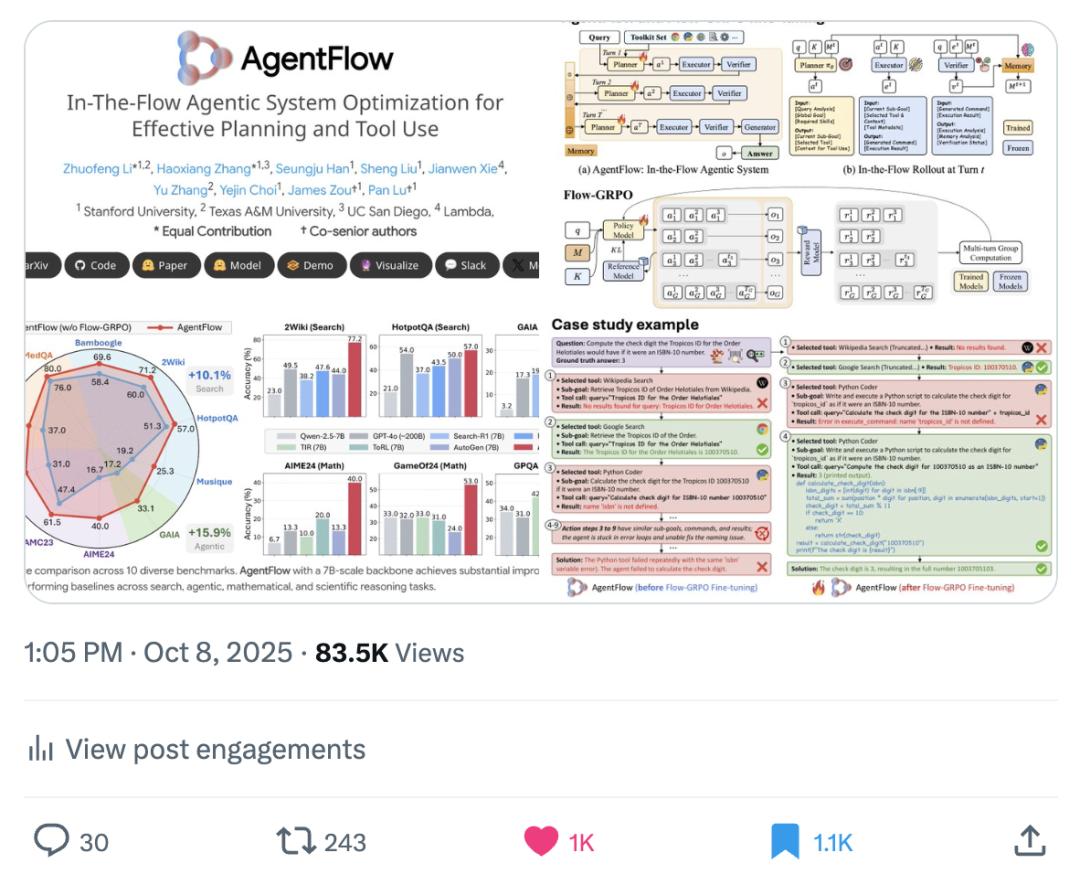 AgentFlow至少让我们看到:Agentic AI的发展不必完全依赖模型规模的堆砌,系统架构创新+高效训练方法可能是更值得探索的方向。