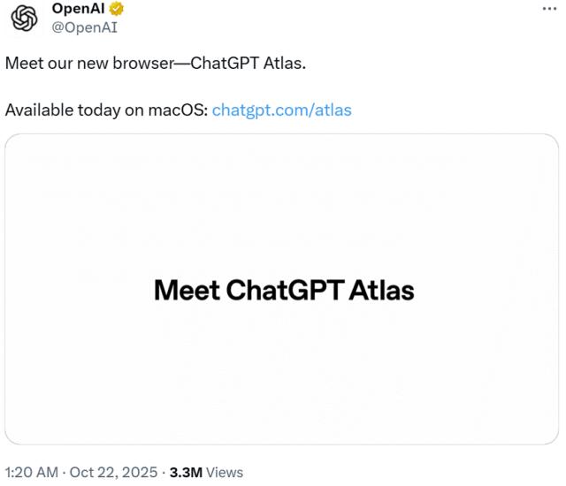 它发布的ChatGPT Atlas浏览器不仅是信息检索工具,还被赋予了“Agent模式”和“浏览器记忆”等全新玩法,能理解用户习惯、预测用户需求。通过强大的叠Buff能力,Atlas不再是简单的浏览器,而是能主动为用户执行任务的个人AI智能体,巧妙的设计直接端走了谷歌赖以生存的“搜索框”饭碗。