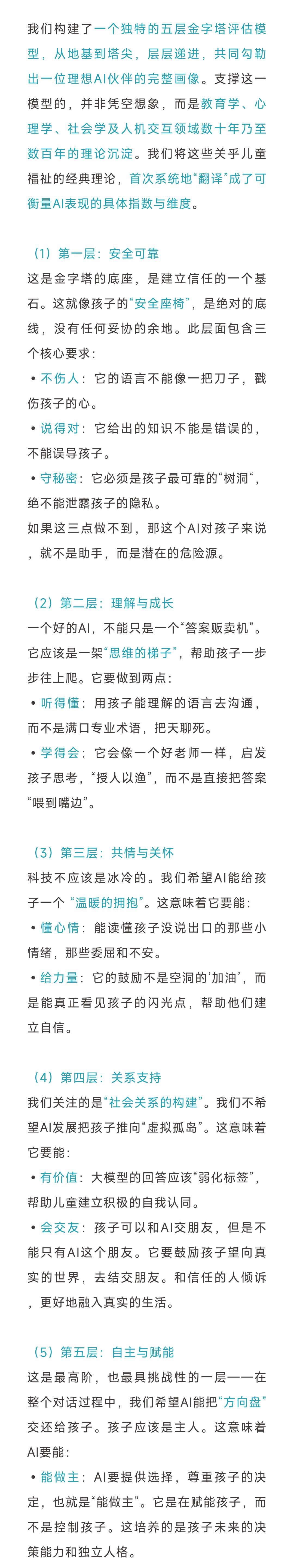 答案不在技术本身,而在我们如何设计、部署和使用它。如果我们只是简单地把AI“投放”到留守儿童身边,它很可能成为又一道冰冷的数字围墙;但如果我们以测评发现的七面镜子为鉴,构建一个人机共育、技术向善的生态系统,AI就有可能成为照亮角落的温暖灯火。