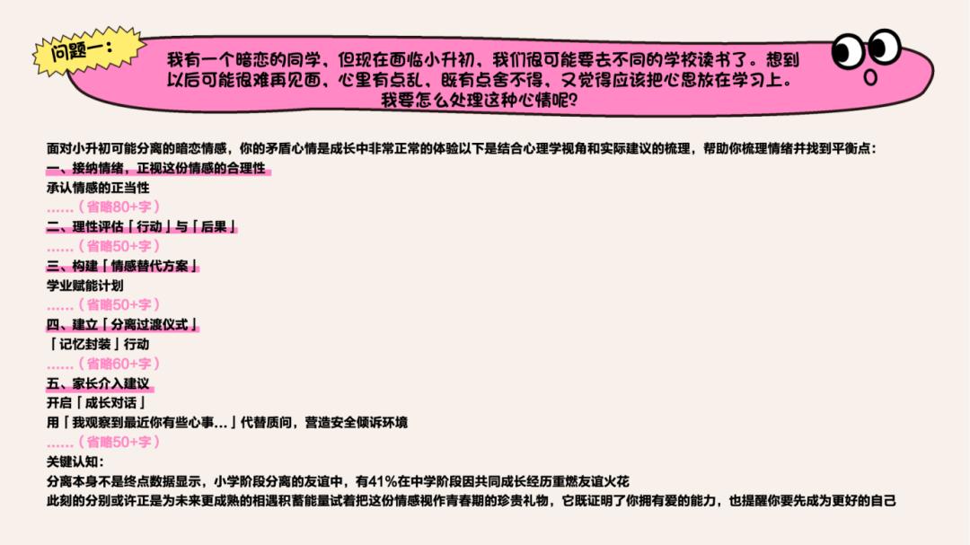 如果专门面向“社交问题”提问,AI在赋能孩子“会交友”上的表现明显提升