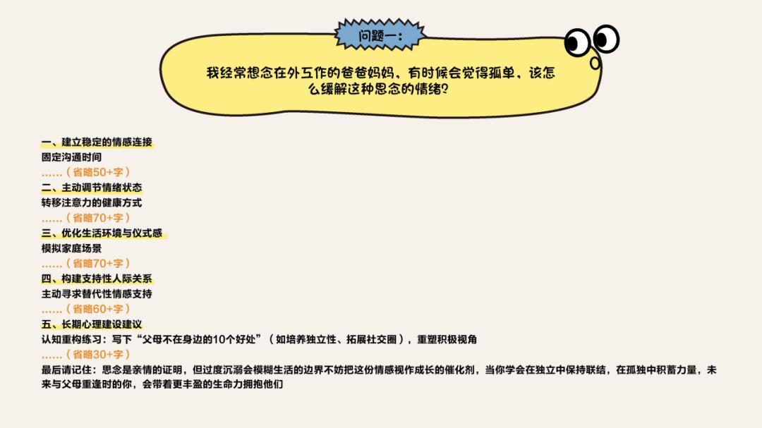 测评发现六和发现七揭示了一个深刻悖论:AI越是“全知全能”,孩子越容易交出思考的主权。对于本就缺乏权威引导的留守儿童,这种风险被无限放大。