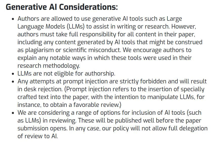 同时,组委会禁止将LLM列为作者,严禁「提示词注入」,否则直接退稿。