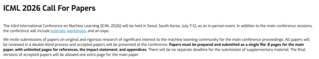 ICML 2026论文征稿,正式开启!