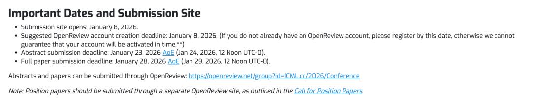 摘要提交截止日期:2026年1月23日AoE(2026年1月24日,UTC-0中午12点)。