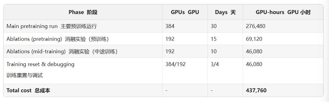 像在训练 SmolLM3 时,使用了 384 块 H100 GPU,持续了将近一个月,总共处理了 11 万亿个 token,工程量之浩大,过程之繁琐。