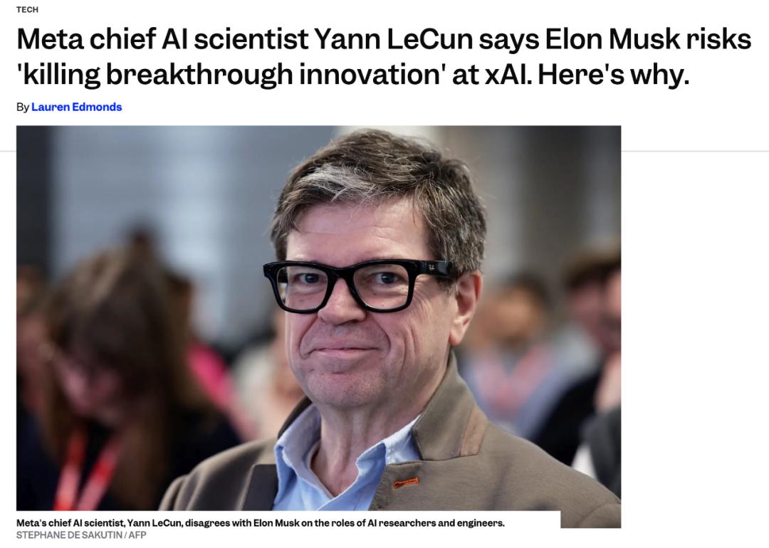 在Meta的AI架构中,FAIR和GenAI是并行的两个组,Yann Lecun管FAIR,但Yann LeCun很多时候沉浸在自己的研发中,有时候还在网上跟人,比如说马斯克对战,还经常说不看好LLM路线,让Meta很头疼。