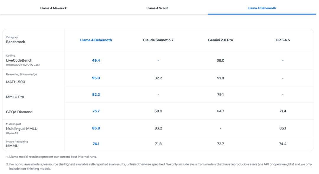 截至目前,Behemoth还没有发布,Meta应该是放弃了。