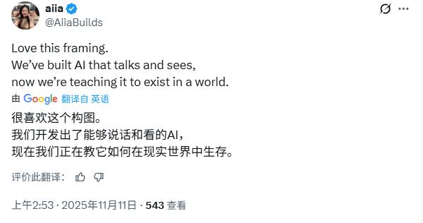 AI 已经学会了“看”和“说”,而下一步,我们正在教它理解并适应我们所在的这个真实世界。