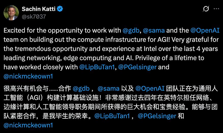 无论如何,Sachin Katti的加盟,看上去都是OpenAI布局算力的一步大棋。