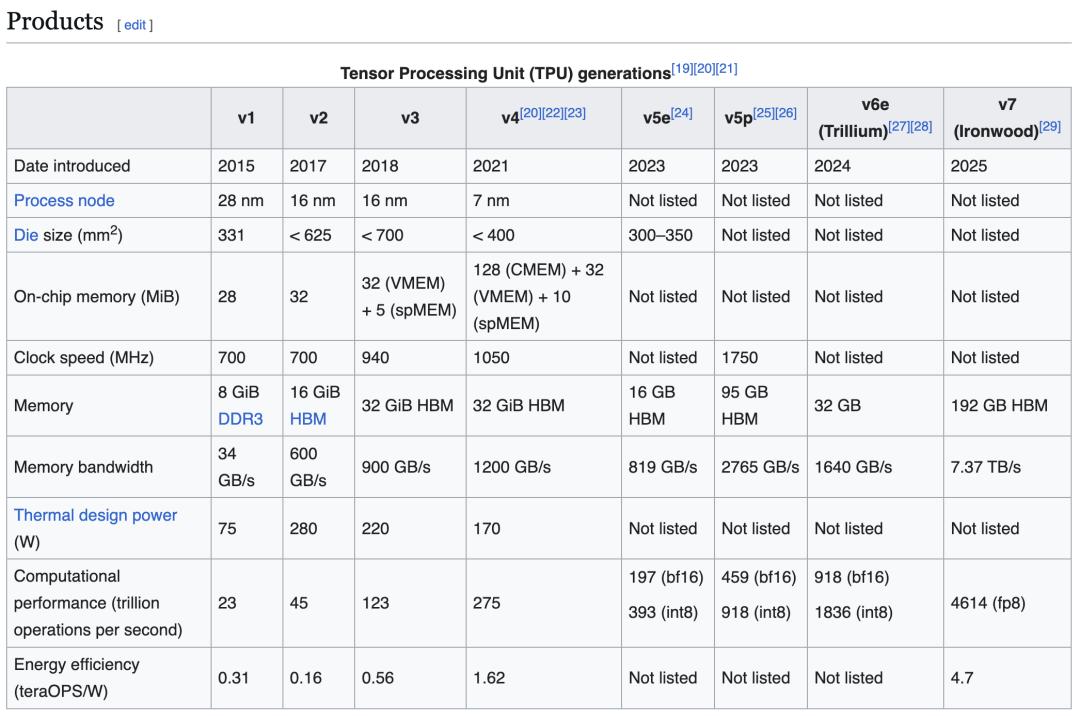 谷歌TPU,全称张量处理单元 (Tensor Processing UnitT), 从早期几代主要作为内部优化工具,到最新的迭代已构成一个成熟且极具竞争力的产品组合。