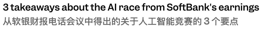 除了全力押注OpenAI、AI泡沫的回应,BI一篇报道中,还提到了软银财报会议中,关于AI竞赛的另外一个要点。