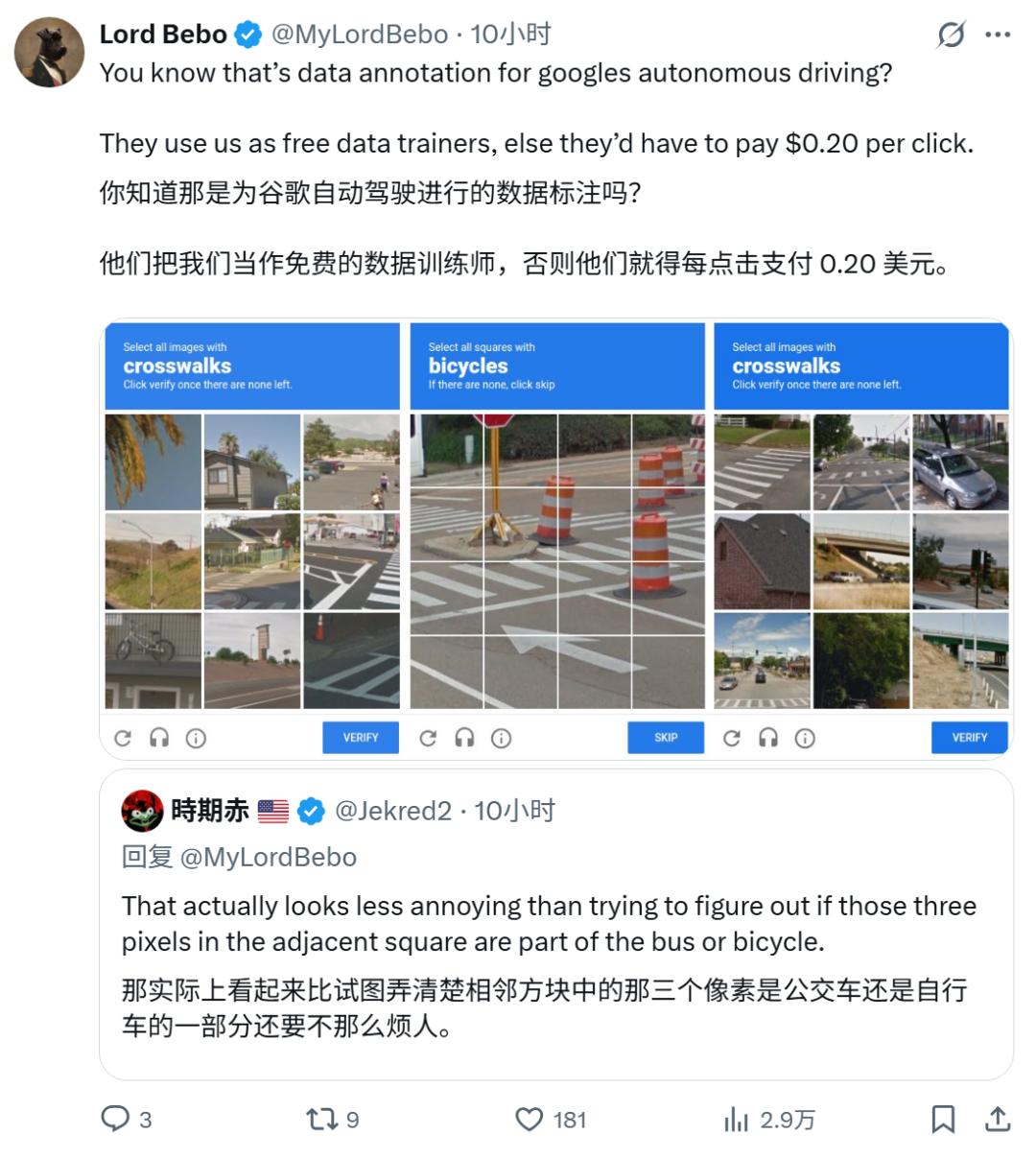 其中一个讨论热度很高:「图像验证是在帮 AI 训练数据,还免费。」