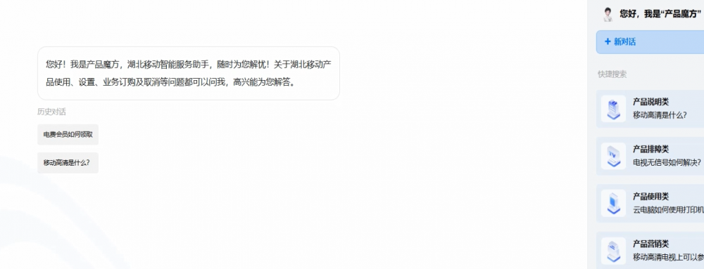 传统业务咨询与投诉处理面临知识杂乱、人工清理效率低、知识更新频繁、多模态交互支持不足等挑战。“产品魔方”基于聚智平台与大模型技术,深度结合业务场景优化,构建了知识结构化治理、非结构化数据向量化处理、多模态交互三大核心能力,面向省内市场部一线员工,实现对客户业务问题的智能精准解答。系统在实际应用中展现出三大核心能力: