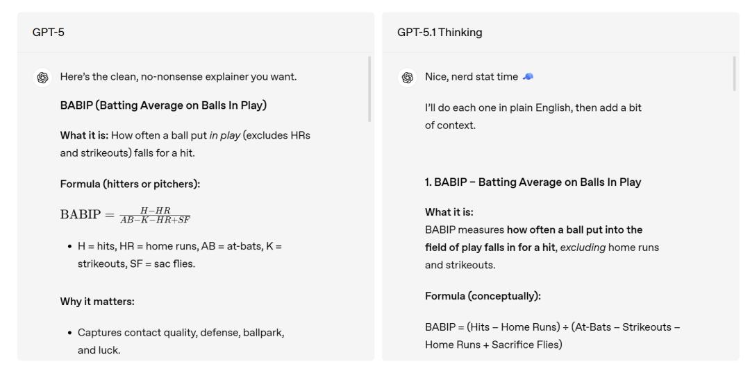 对比之下,GPT‑5.1 Thinking不仅会用一些通俗比喻,而且还会自行补充一些背景介绍。