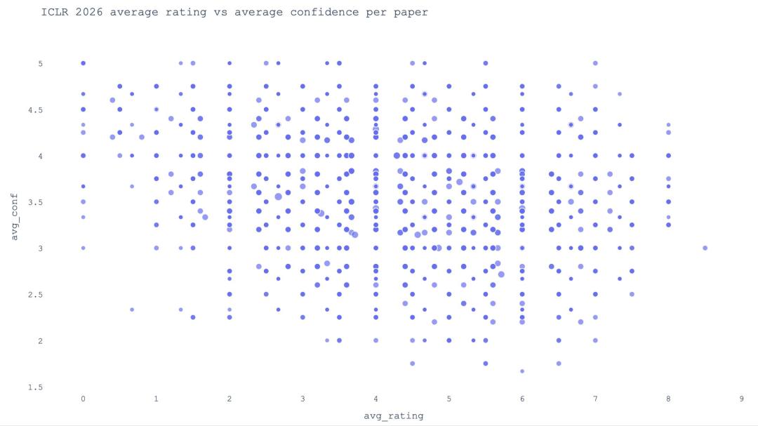 ICLR 2025平均分为5.12分,ICLR 2026平均为4.20。