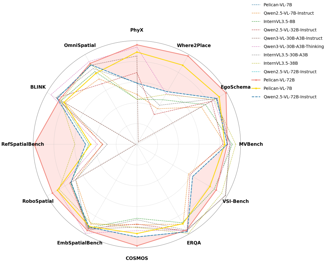凭借这一机制,Pelican-VL在多个维度展现出突破性能力: