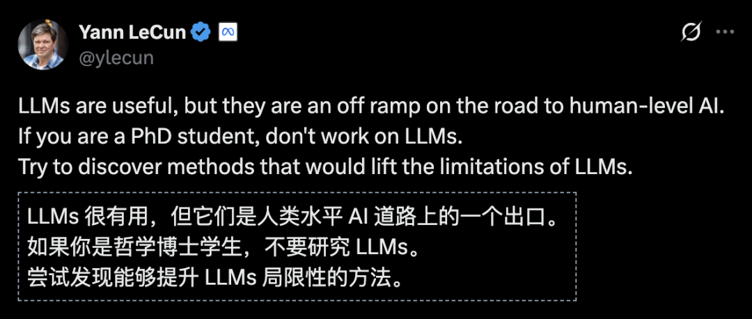 这些年,我在硅谷、包括Meta的很多角落都不太受欢迎,因为我一直在说,3到5年内,世界模型将成为主流AI架构,没人再会愿意用现在这种LLM。