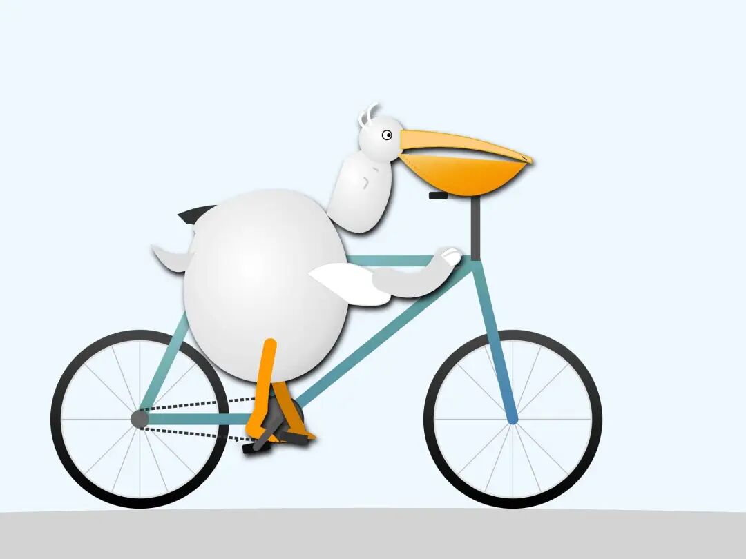 以及 riftrunner 生成的,一只骑自行车的鹈鹕的 SVG。