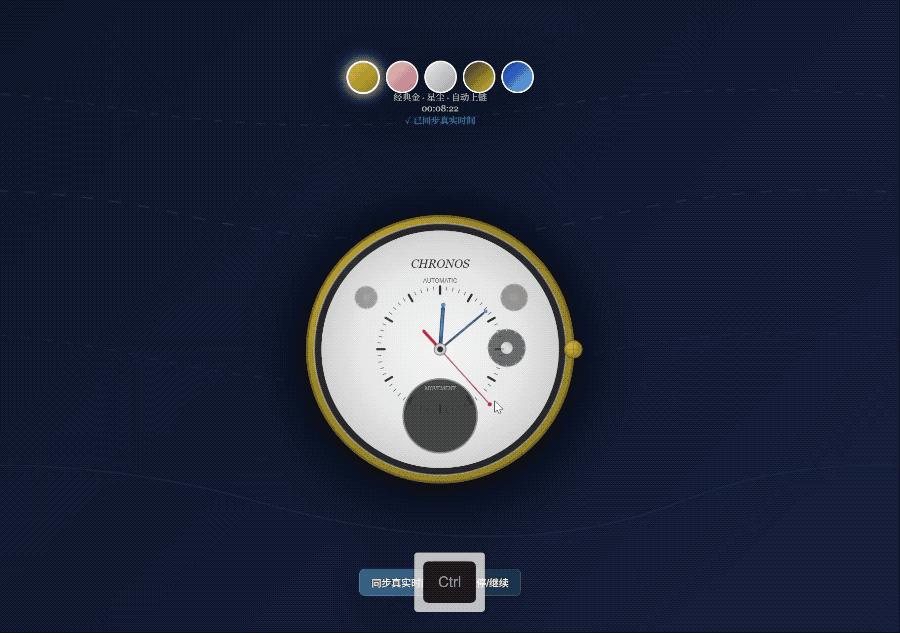 他还用这个编号为 riftrunner 的模型,生成了一个能同步真实时间,切换表盘颜色的手表动画 SVG。