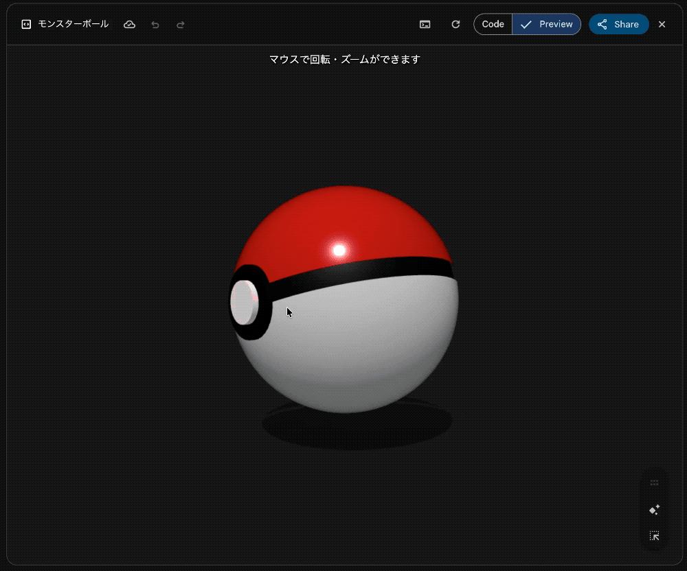 以及拿手机应用中的 Canvas 和 Claude 4.5 Sonnet 来对比,输入的提示词都是,一个 3D 宝可梦精灵球。