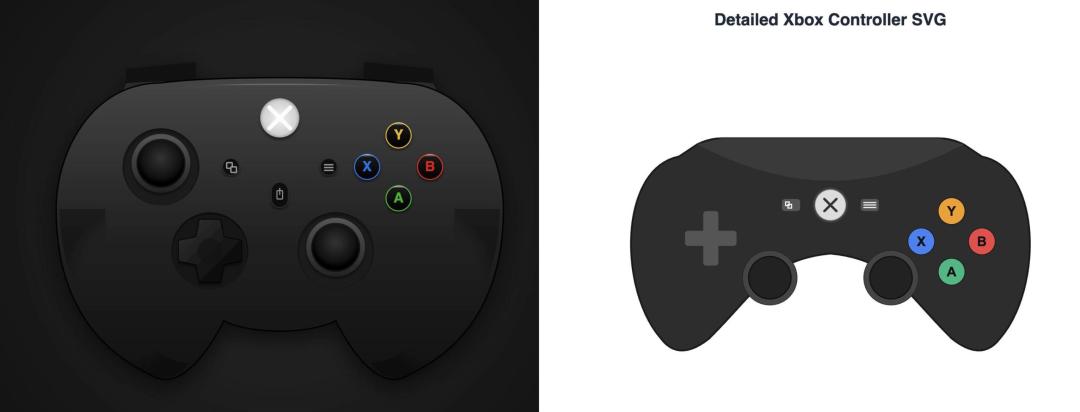 还有人拿 Xbox 手柄 SVG 图来做测试,iOS 手机应用里的 Canvas 和 浏览器里的网页版,是完全不同。