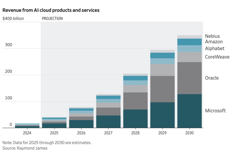 随着基础设施投资规模继续攀升,企业面临的现实问题是,这些投入必须在未来某个阶段通过收入回补。科技公司预计,消费者与企业未来可能会为价格更高的AI产品付费,包括智能代理、自动化工具以及具备执行能力的机器人等服务。雷蒙德·詹姆斯提供的乐观预测显示,AI云服务的收入有望在未来五年增长近九倍。