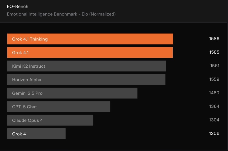这种表达方式,使得Grok 4.1的情绪智能不再只是“识别”悲伤,而是能够“陪伴”悲伤,这正是许多大模型难以做到的一步。