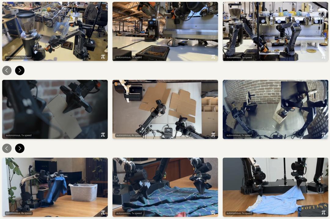 Physical Intelligence 使用 Recap 来训练 π*(0.6) 模型,使其能够执行多项真实世界应用。π*(0.6) 是基于 π(0.6) 模型训练得到的,而 π(0.6) 则是早期 π(0.5) 模型的改进版本。