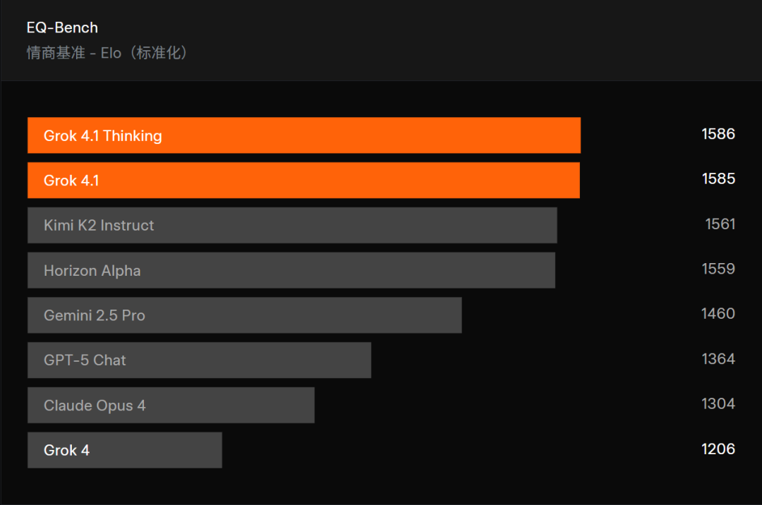 这使得 Grok 4.1 在情绪理解方面迈入第一梯队
