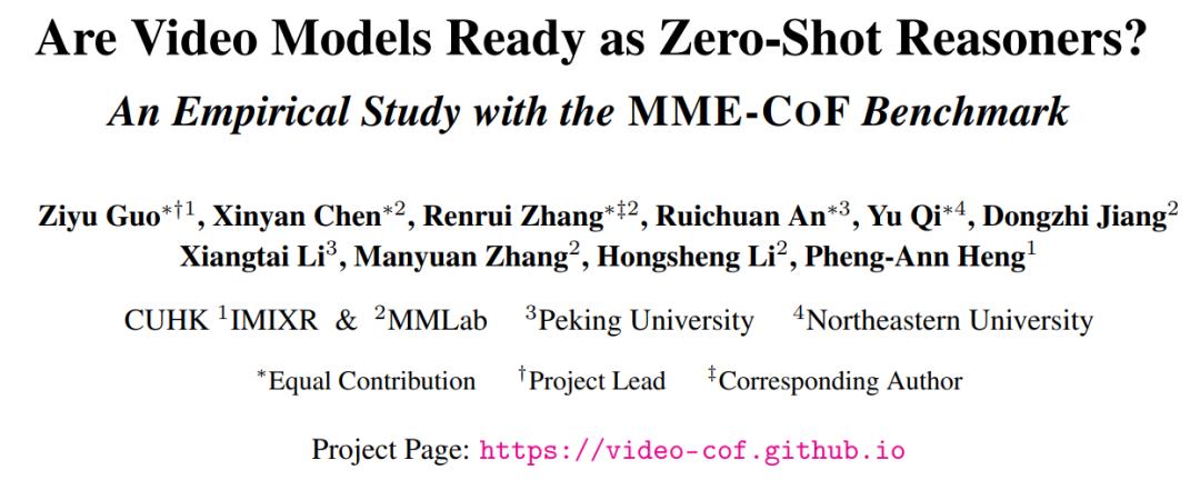 论文题目:Are Video Models Ready as Zero-Shot Reasoners? An Empirical Study with the MME-CoF Benchmark
