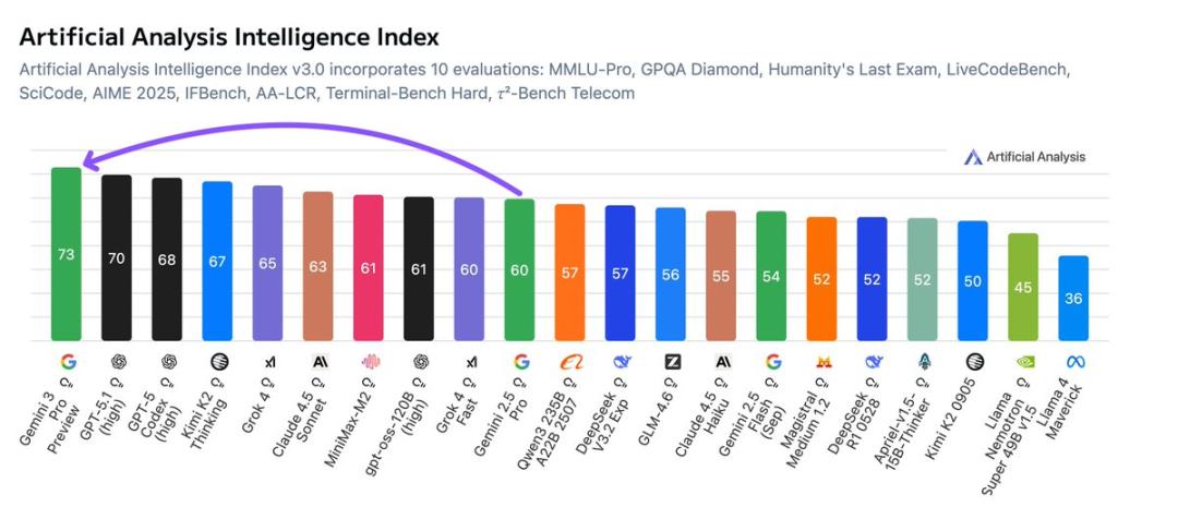 但Gemini 3的出现,把原本胶着的战争直接变成了断层式的碾压。