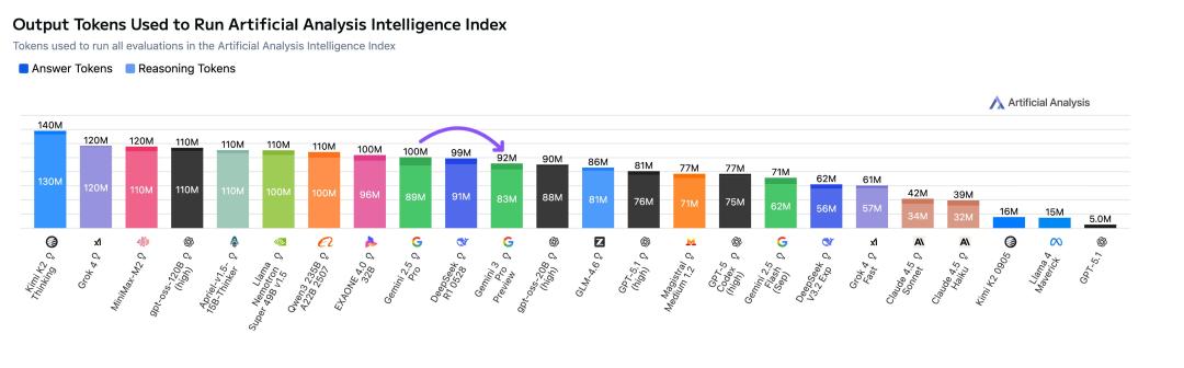 另外,Gemini 3还开启了一个新的性能-成本比逻辑。在API上,Gemini 3 Pro的定价并不亲民,每百万输入/输出Token的价格高达$2/$12 ,是目前运行成本最高的模型之一。但考虑到它在token效率上却相对更高,比起其他如Kimi K2的模型,它在相同任务上用的tokens更少。这使得其实际使用成本的增加只有12%左右。