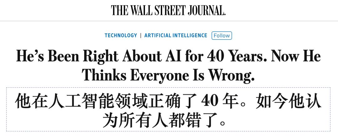 最近外媒WSJ给LeCun写了一篇有点「歌颂功德」味道的文章,声称「他一直正确了40年」。