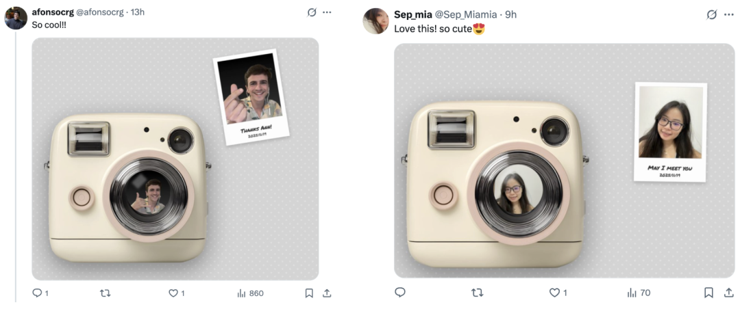 摆好 pose,点击快门,带有复古滤镜的照片直出: