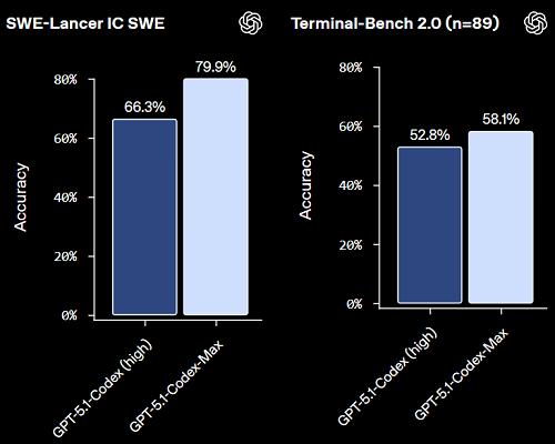 性能方面,GPT‑5.1‑Codex‑Max在多个编程基准测试中评测优于前代GPT‑5.1‑Codex。该模型还是OpenAI训练的首个适用于在Windows环境里进行编程操作的模型。